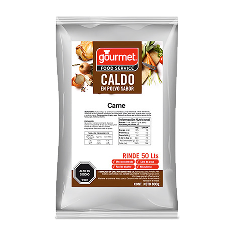 Caldo en polvo sabor Carne. Para todo tipo de preparaciones. Se puede agregar directamente como un sazonador o disolver en agua para cocer arroz o fideos.