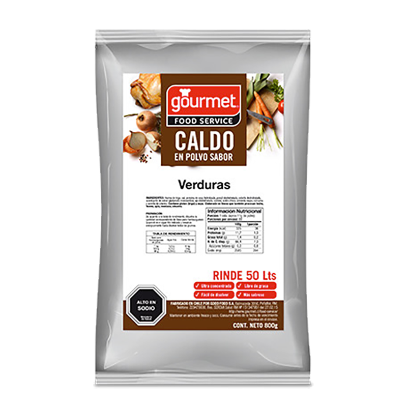 Caldo en polvo sabor Verduras. Para todo tipo de preparaciones. Se puede agregar directamente como un sazonador o disolver en agua para cocer arroz o fideos.