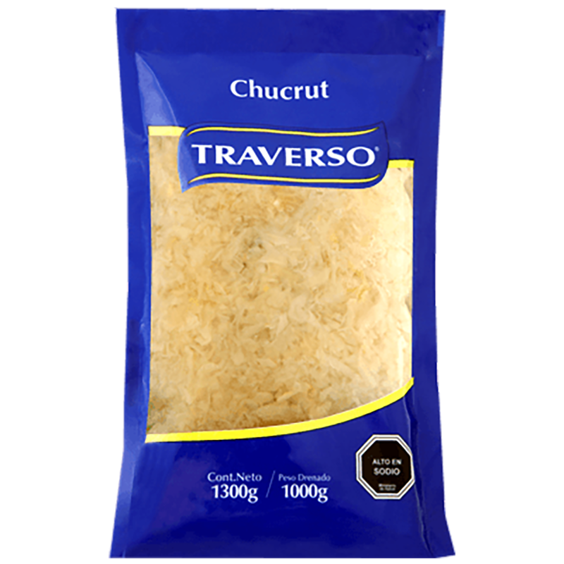 El chucrut es un fermentado del repollo, tradicional de la comida de Alemania y Polonia. Formato Food Service, bolsa de 1 kilo