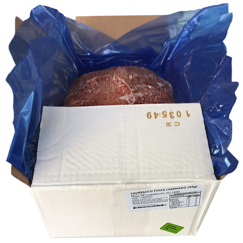 Caja de 5 Kg con 150 churrascos aprox. de 33 gr cada uno (pesos y cantidad unitaria pueden variar por caja)