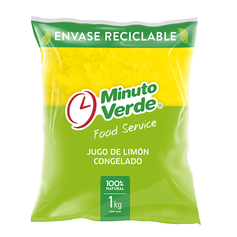 Jugo de limón congelado, listo para incluír en tus preparaciones o hacer ricas limonadas. Bolsa de 1 Kg, conservar congelado.