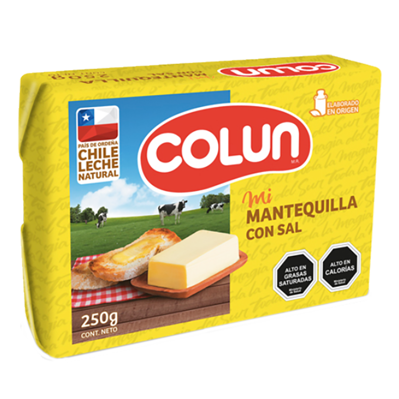 Mantequilla panificada Colun es un producto lácteo derivado exclusivamente de crema fresca pasteurizada de leche.