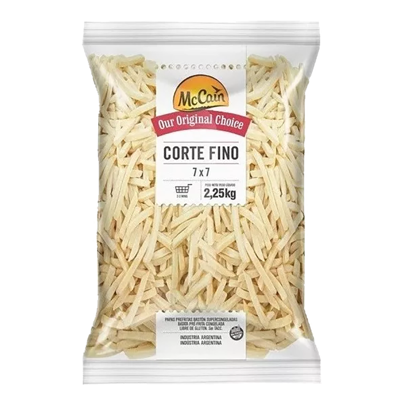 Papas Fritas CORTE FINO 7 x 7 mm Mantener Congelado a -18°C Vida útil: 540 días Bolsa x 2,25 Kg