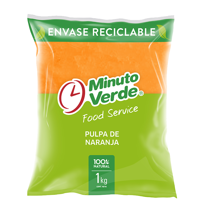 Pulpa de naranjas congelada, listo para preparar jugos o hacer ricas naranjadas. Bolsa de 1 Kg, conservar congelado a -18°C